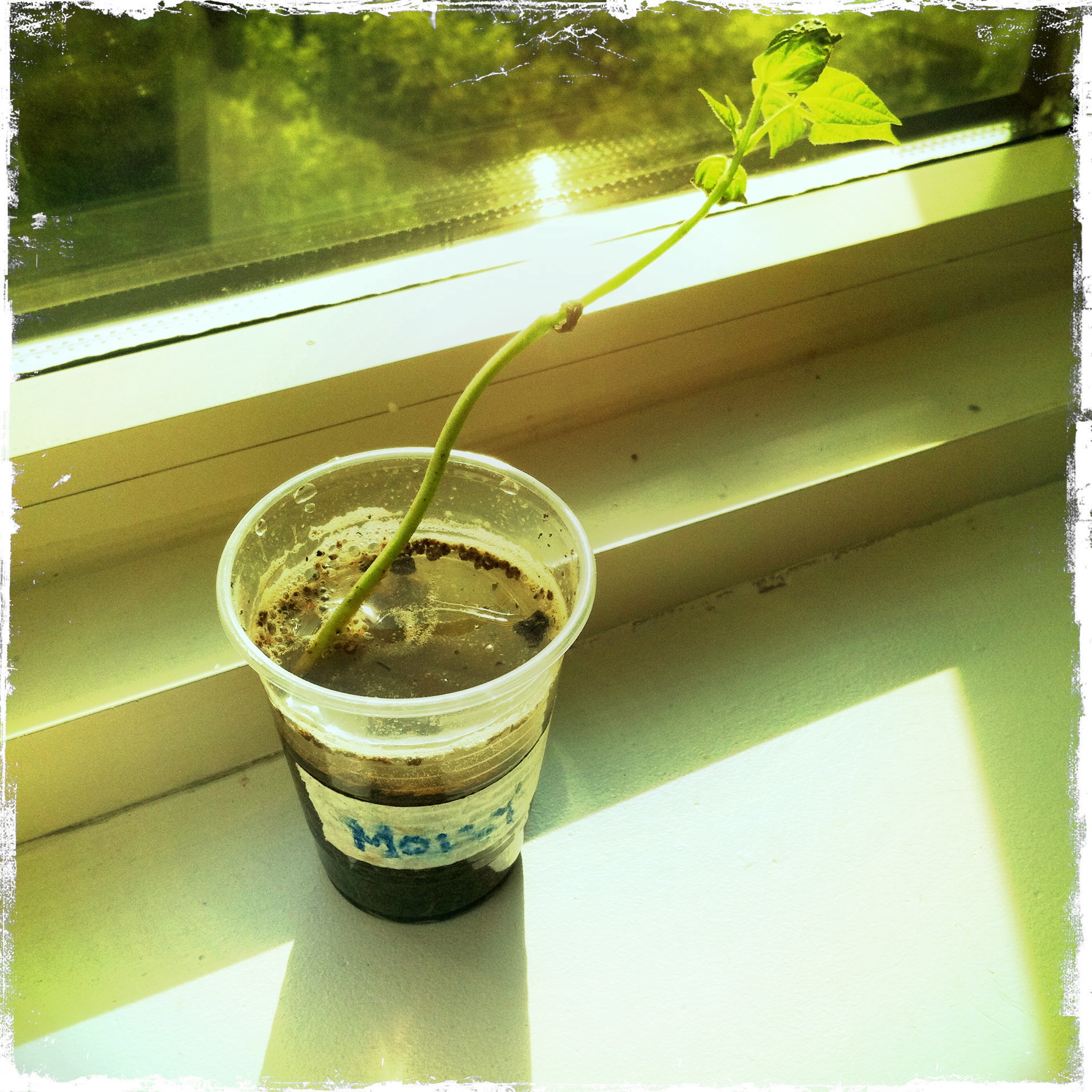 I thought watering it meant pouring way too much water into its pathetic dixie cup and waiting for it to absorb over the week.  Two inches of dirt cannot absorb 16 ounces of water.  Lesson learned.  M asks about her plant every day.  She watched it grow from a tiny seed in a bag to this long-suffering noble stalk on our window sill.  She shows it to everyone who enters this apartment: delivery men, her brother’s physical therapist, the plumber. Clearly, this poor green bean leaf is at its end of days.  “What fresh hell is this?” it may be asking each morning it sees me enter the kitchen and approach its perch on the window sill.
