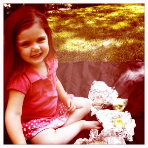 That’s great sweetheart.  Isn’t it nice to eat lunch outside?