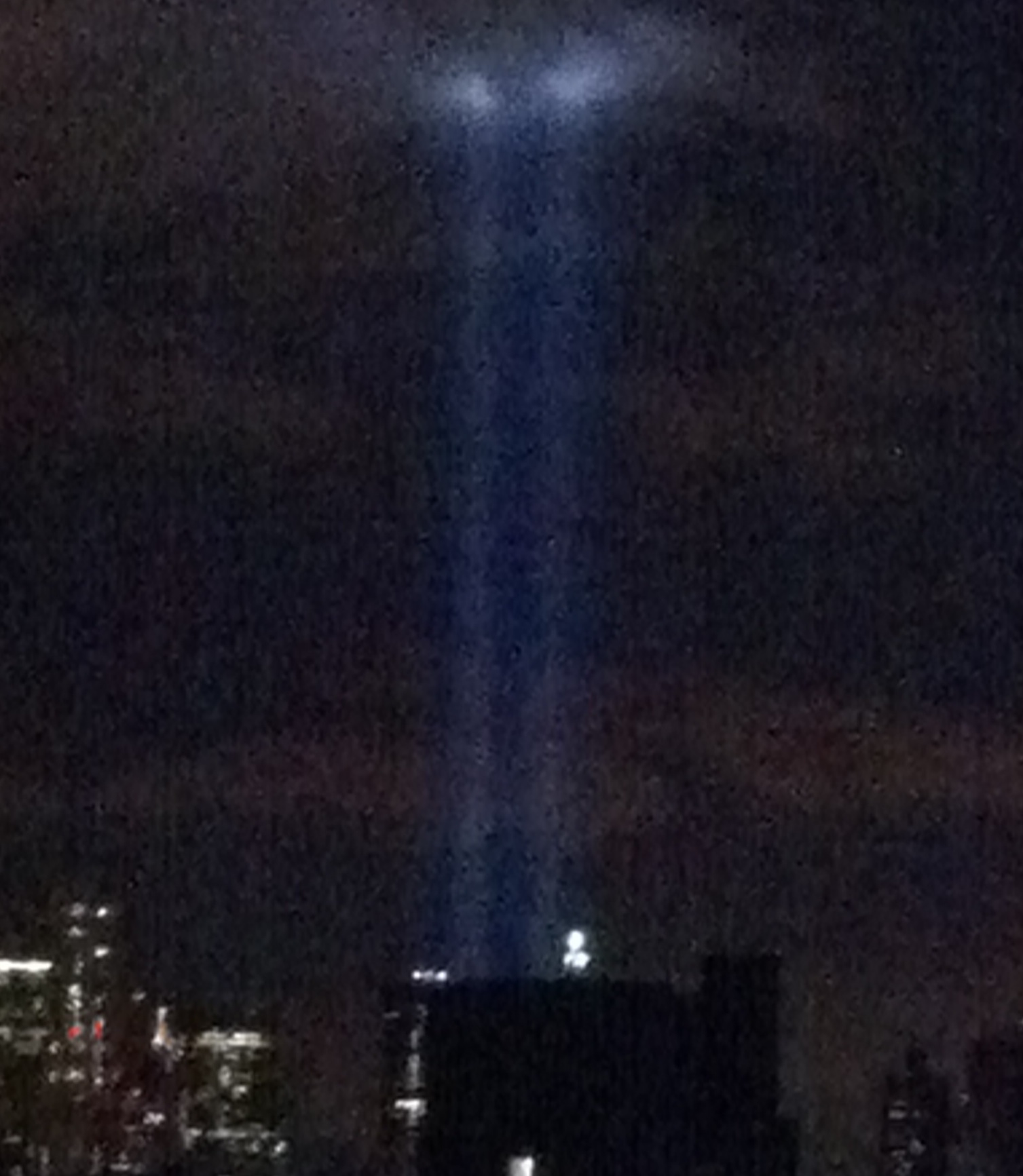 Every anniversary of Sept. 11, two beams of light reach high into the night sky from downtown Manhattan.  We were crazy fortunate to have an unobstructed view of this Tribute in Light from our last apartment. (I was exaggerating previous comment on brick walls.  But only barely.)
