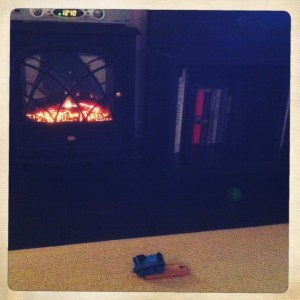 I have my laptop, one open window on a chilly night, the moon, the electric fireplace, toys on the floor, a sauvignon blanc opened earlier in the week.  I am the only witness to this perfection.