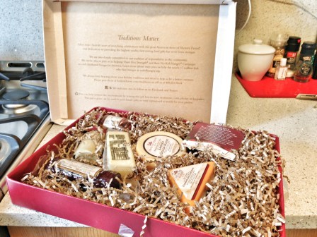 One reader will receive the same Party Planner gift basket I have been enjoying: Farmhouse Cheddar, Creamy Swiss, Turkey Summer Sausage and more. Do not worry–my husband is ineligible to enter. Whew.