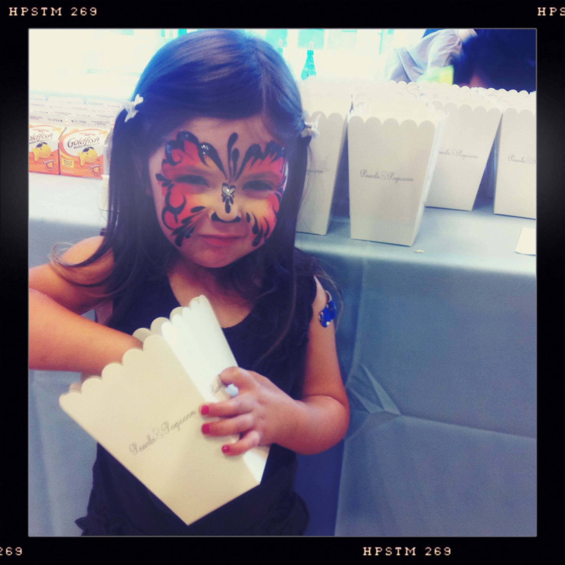 The debut party was a lot of fun for Molly; while I perused the adorable dresses, smock tops and skinny jeans for tots, Molly had her face painted and indulged in more than one tub of popcorn. We were both in our element.